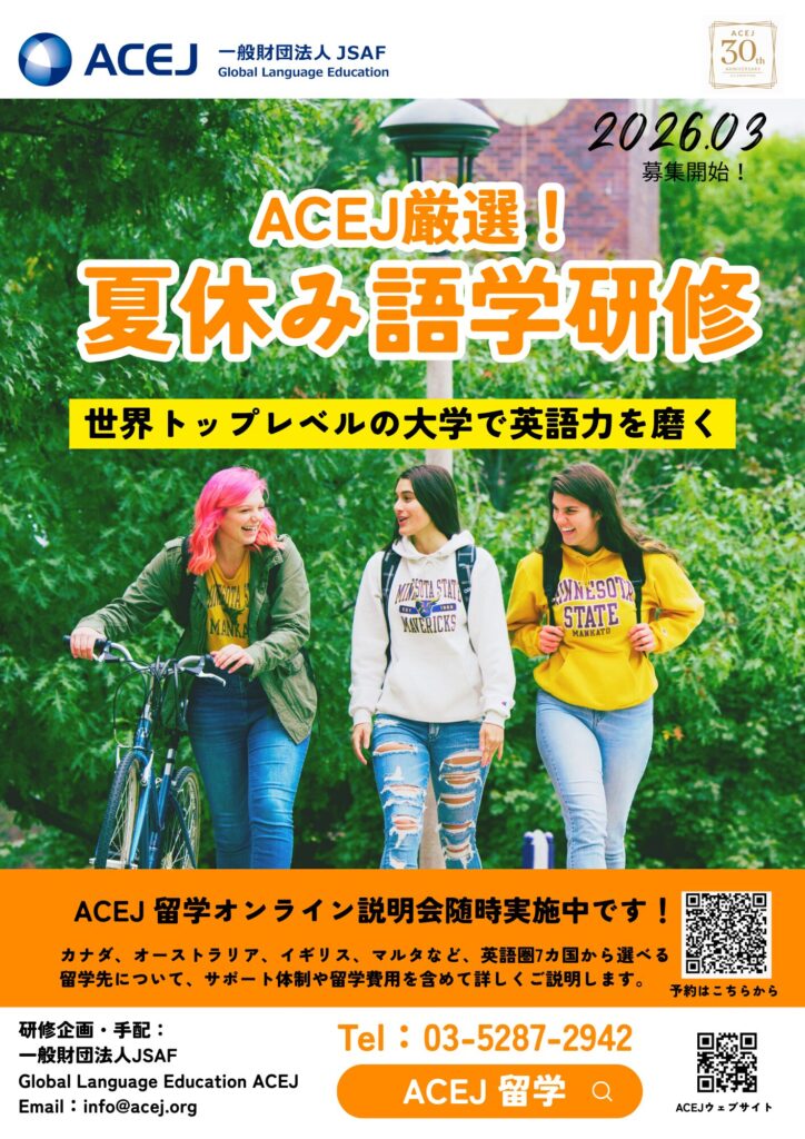 ACEJでは、2月下旬頃に2026年夏休み語学研修プログラムの募集を開始予定です。