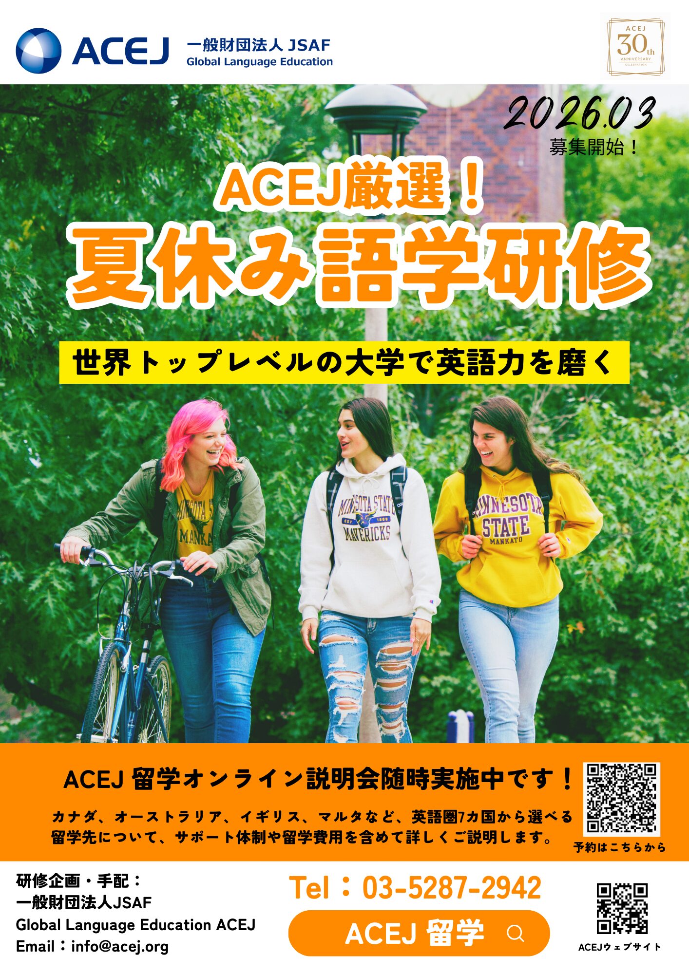 ACEJパンフレットダウンロードはこちら ※2026年夏休み情報は近日公開予定となります。今しばらくお待ちください。